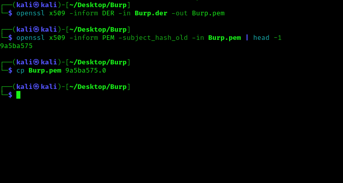 openssl x509 -inform DER -in Burp.der -out Burp.pem