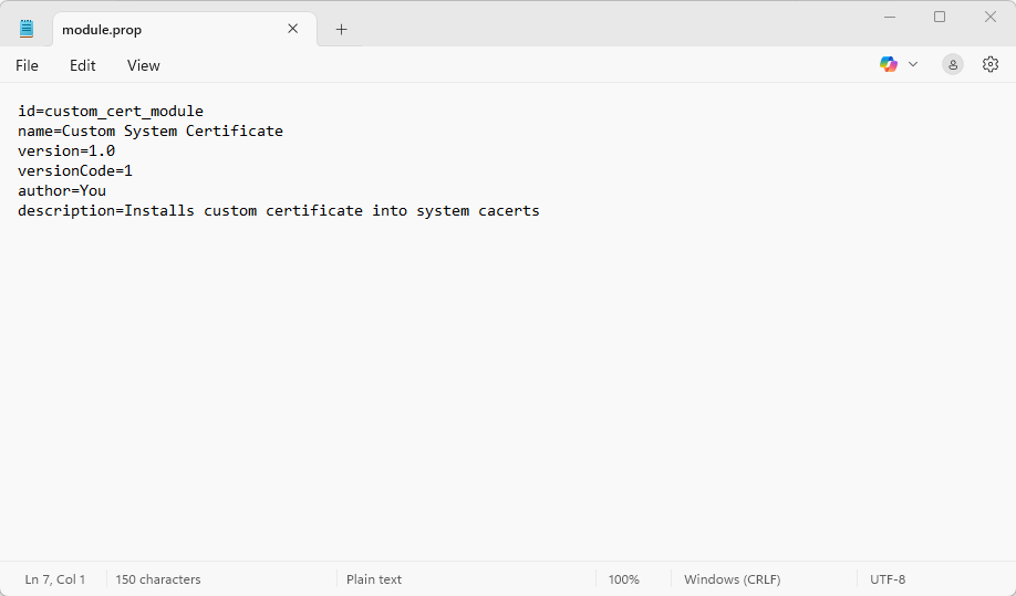 This is the metadata file of the Magisk module.