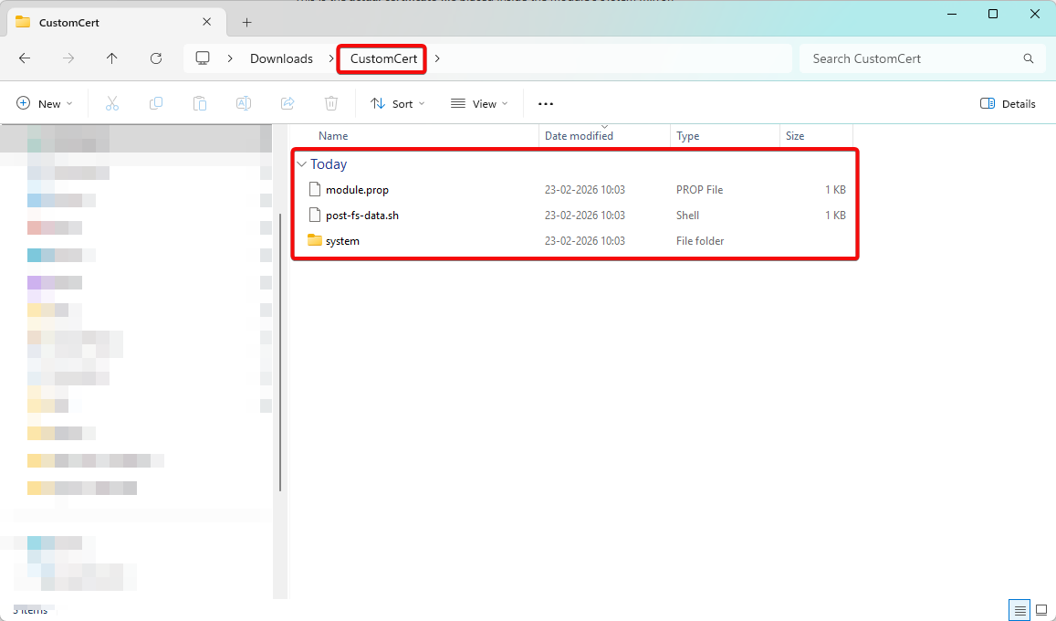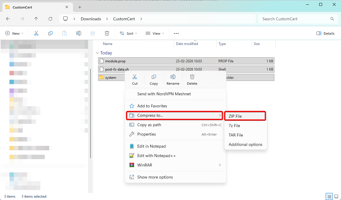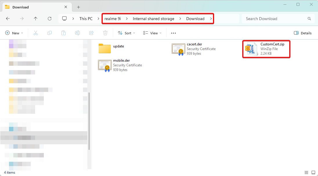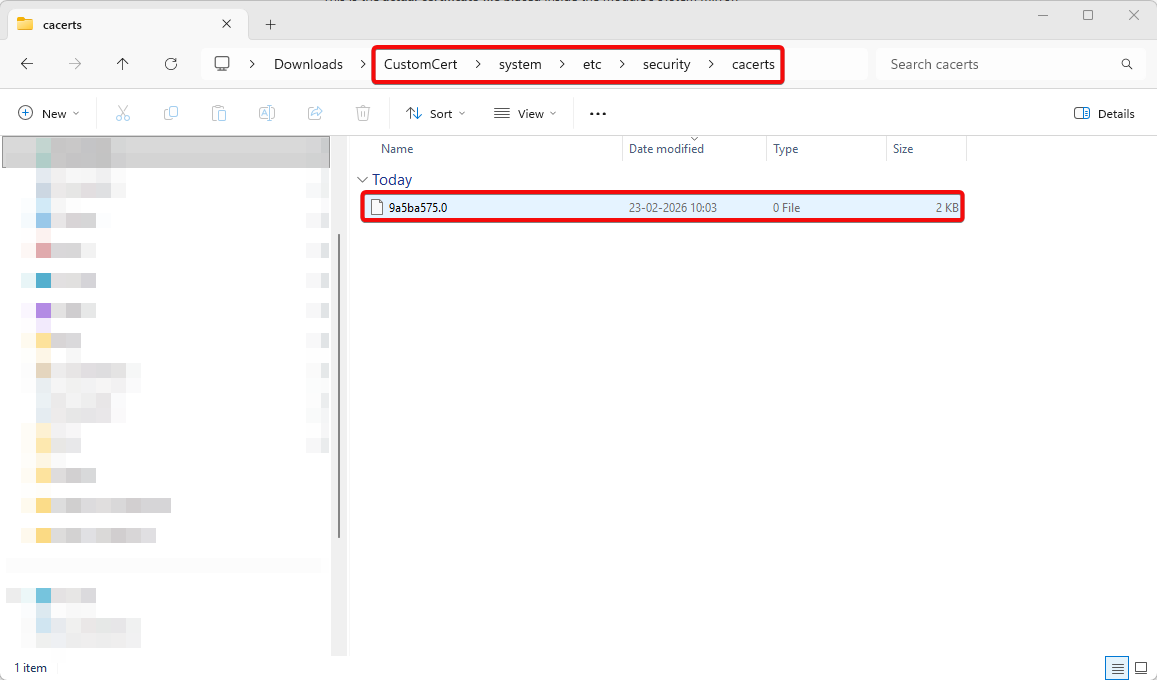 1. Transfer CustomCert.zip to Android device (version 11+).