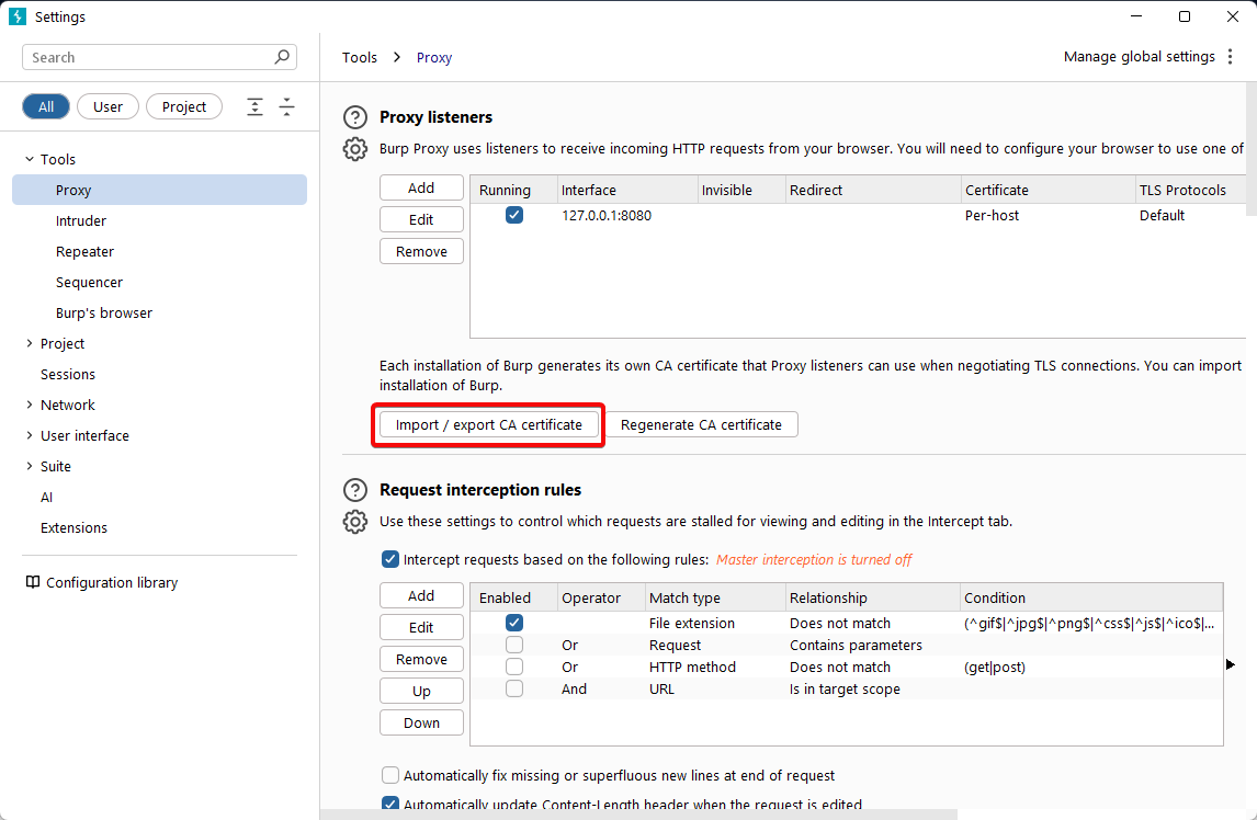 Export Burp suite Certificate (DER format)